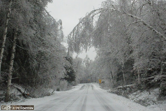 Can you spot the 2 fallen trees that the crews had cleared from the road in this last shot? (Hint: There's one on each side of the road.)